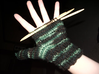 to my right: Nina's Glove...pattern from Stich'n'Bitch Nation! I didn't use the cabeling pattern due to shortage of time. Galway Wool from Loops and Links was used to make this glove.